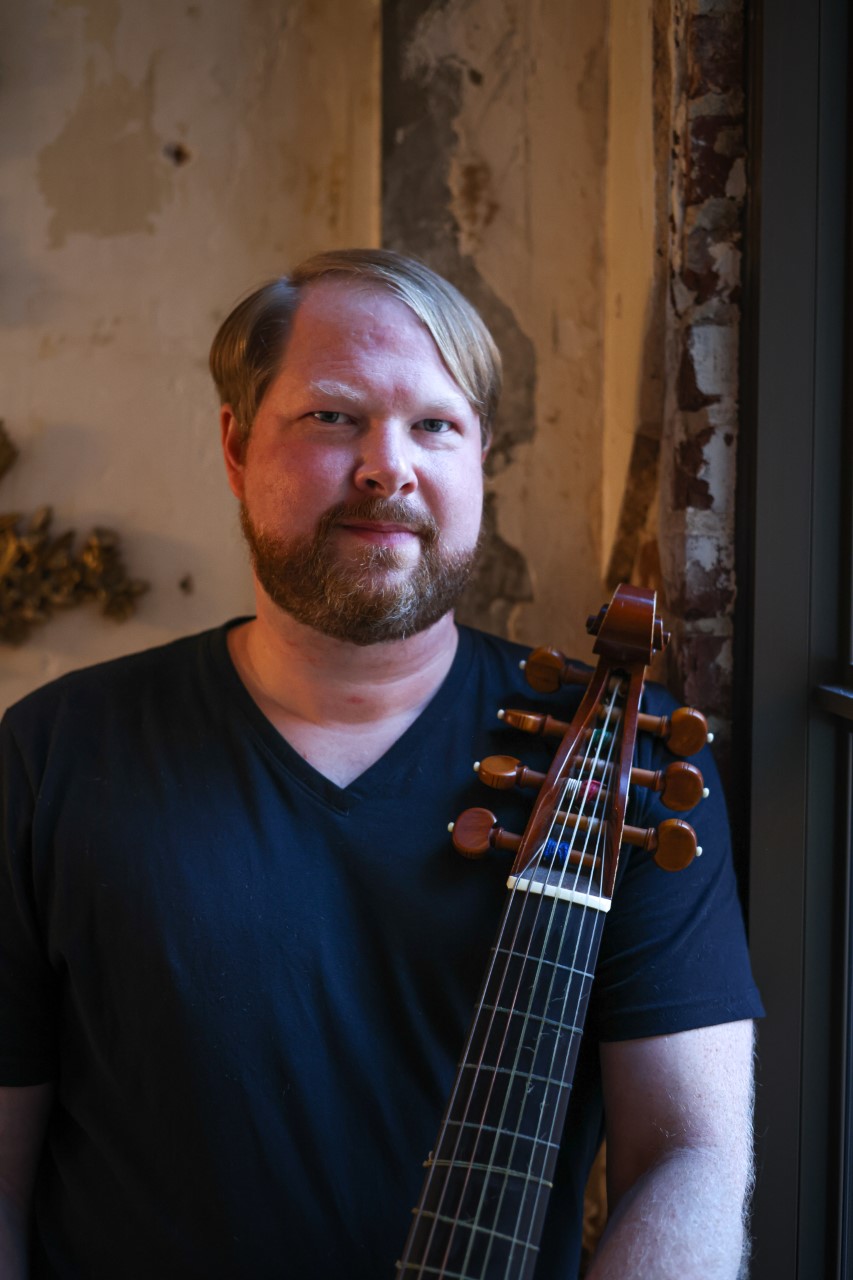 Simon Martyn-Ellis began playing the lute after finding the classical guitar repertoire too restrictive for ensemble performance: continuo collaborations remain a mainstay of his activities. Simon returned to Australia in August 2019 after 17 years abroad, having lived and worked in first Germany for a decade, and then the United States. Intensely grateful for his experiences, he looks immensely forward to working with past, present and future colleagues from home and around the globe. You can hear him working within Pinchgut Opera, Latitude 37, the Australian Haydn Ensemble, Van Diemen’s Band, ARCO, Salut! Baroque, Ensemble Galante, the Queensland Symphony Orchestra and Duo Corbetta, along with other small but special collaborations. His particular interests are in vocal works, either in opera or intimate recitals, baroque and romantic guitar repertoire, and finding the groove in Early Music. But really, he just has a great time making music with people, exploring the diversity and richness of the sounds of plucked strings from the 16th to the 19th Centuries.