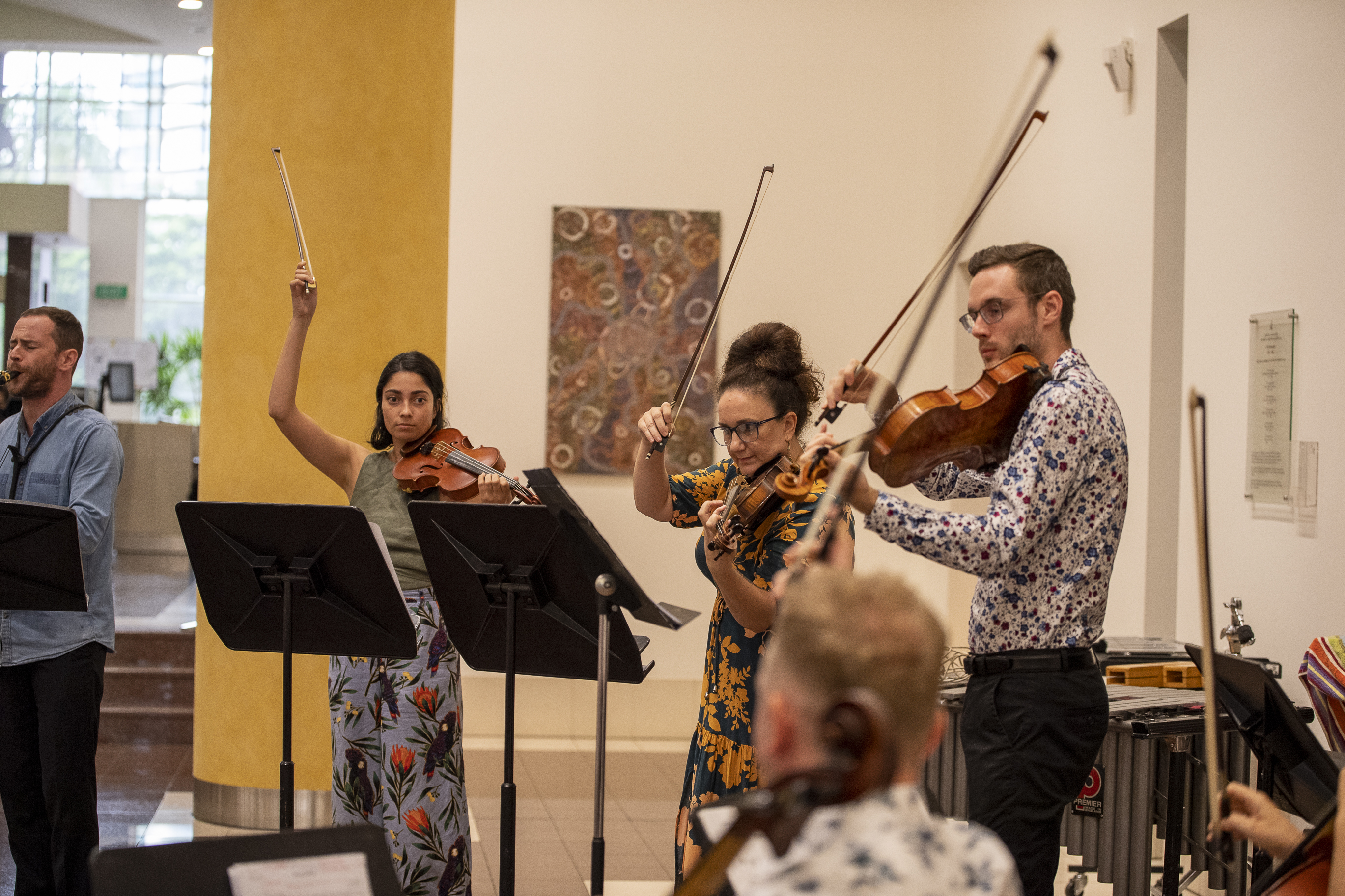 On 13 and 14 July, 2017 Brooke Green’s Reza Barati was performed by Camerata in Brisbane and Toowoomba as part of the Queensland Music Festival. This is a new arrangement for cello, percussion and string orchestra.