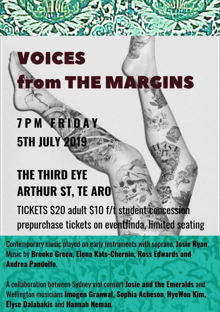 Each year, Josie and the Emeralds honour St Cecilia, Patron Saint of Music. John Dowland’s Lachrimæ or seaven teares figured in seaven passionate pavans, songs from his Pilgrim’s Solace, music by William Byrd, John Blow, Elvis Costello and the premiere of Phoenix Chaconne by Brooke Green, are among the delights of this year’s St Cecilia’s Day program.